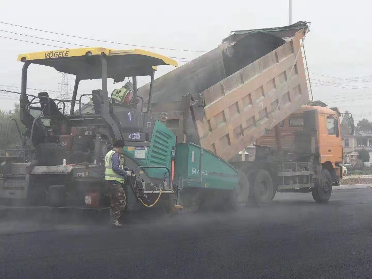 高港大道瀝青路面改造工程現場(chǎng)